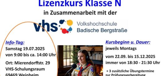 Als Vorbereitung und Ankündigung für unseren Lizenz-Kurs zur Vorbereitung auf die Prüfung für die Klasse N – und um die vielfältigen Aspekte des Amateurfunks Interessenten näher zu bringen. Ab Montag, den 22.09.2025 bis 26.01.2026...